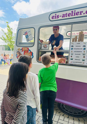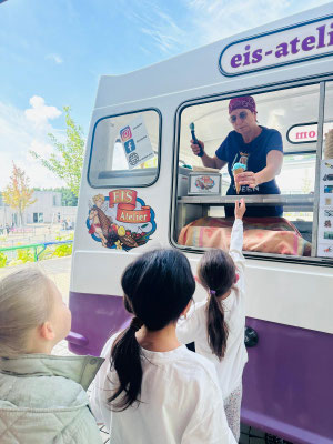 Auch wenn es vielleicht nicht mehr gaaaanz so heiß war am Dienstag, dem 8.Juli ab 10.00 Uhr, so fand doch der Eiswagen größtmögliche Begeisterung bei Kleinen und auch Großen an der TWS.